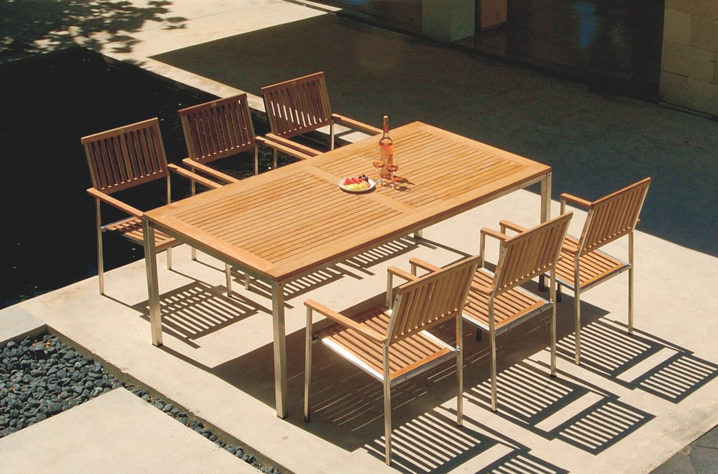 Inoxist Outdoor Dining Series is designed with a combination of Stainless Steel and Teak Wood, which makes the furniture more modern and exclusive look.