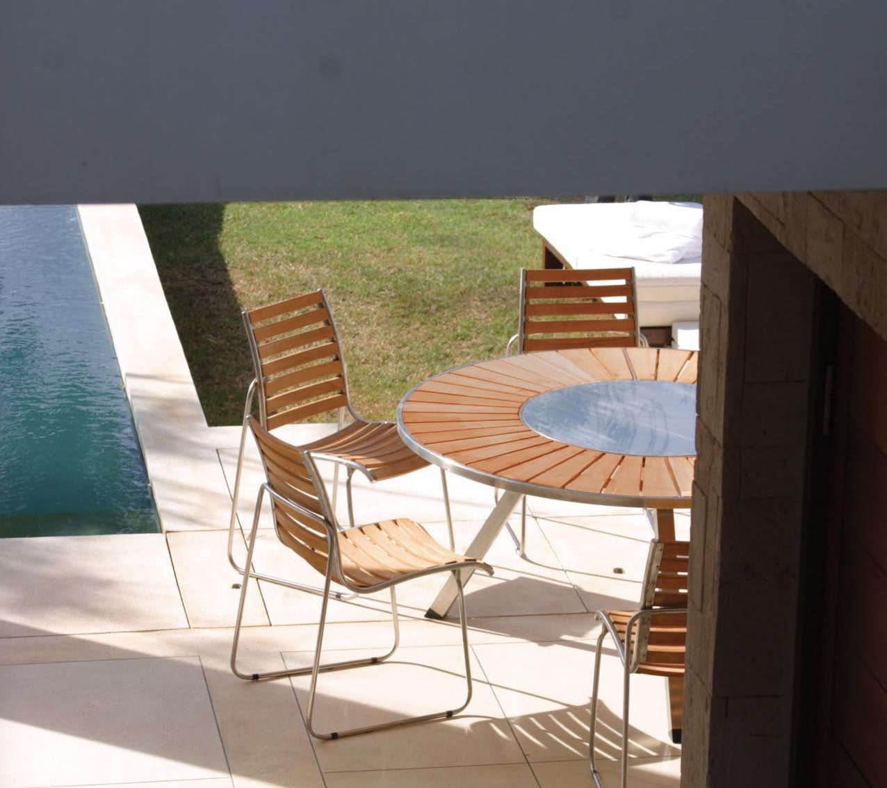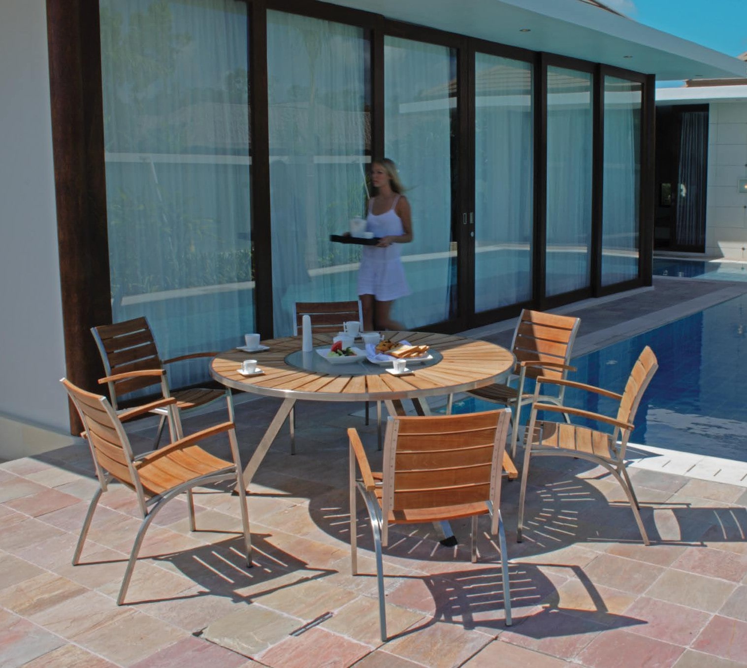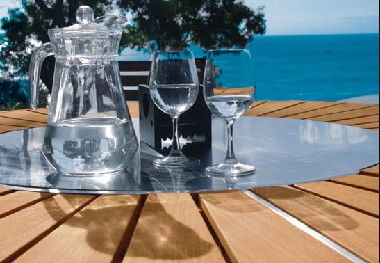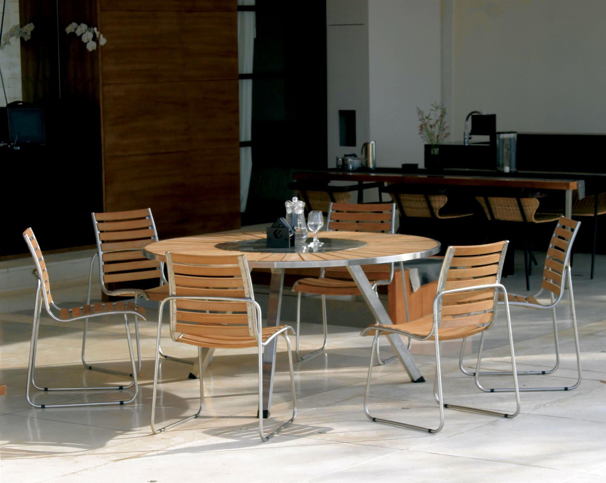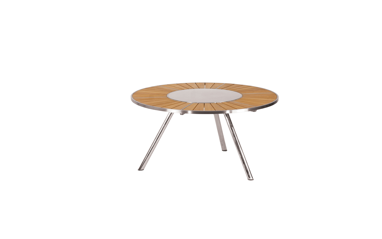 The table is made of high quality stainless steel and teak wood. It has a smooth surface, which allows to place any dishes on it without worrying about scratches or stains. The simple design of the table makes it fit all kinds of interior, both classic and modern ones.