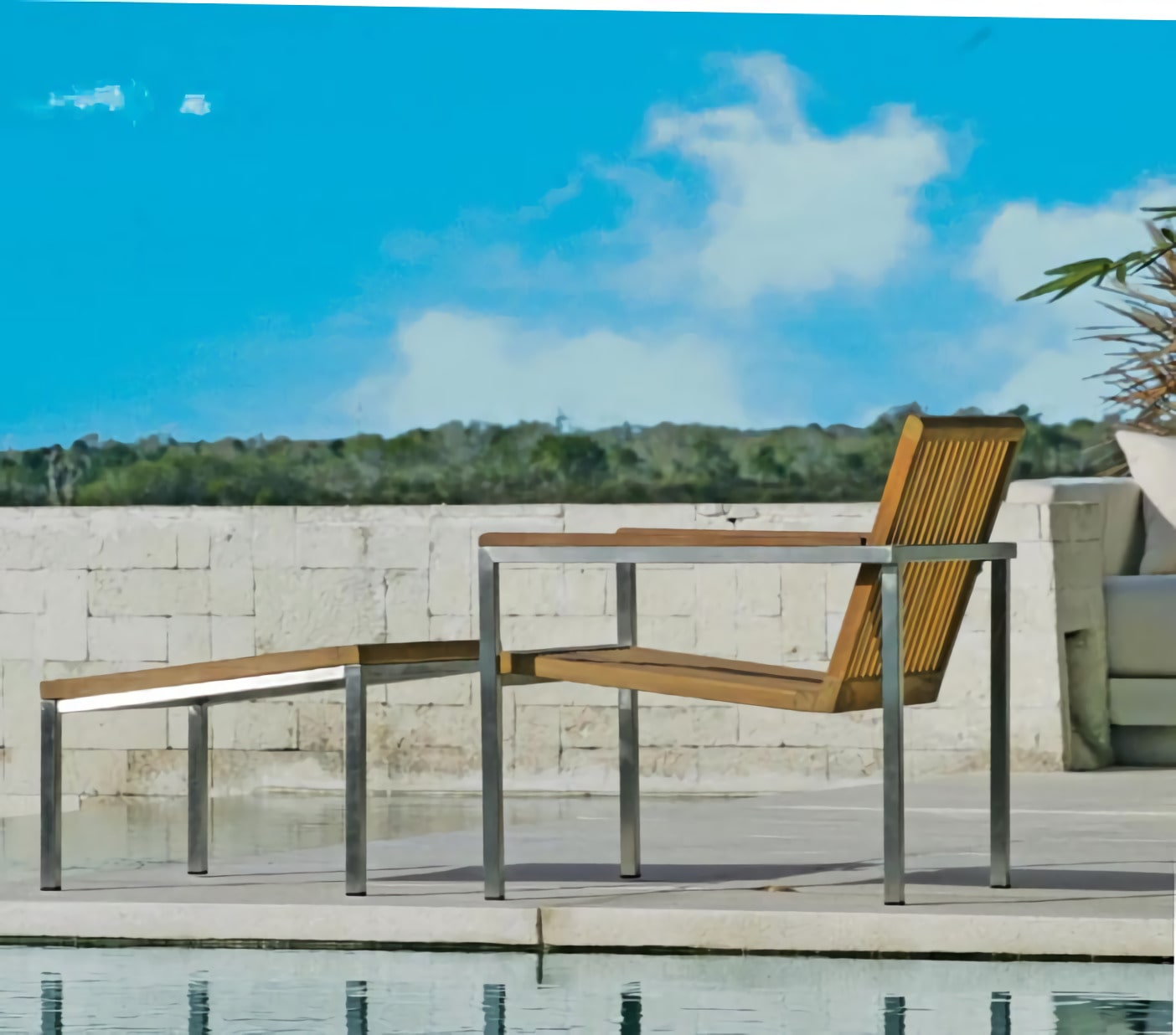 Stackable Chair, Recliner, Footrest, and Lounger is a kind of outdoor armchair. When it combined with Brushed Stainless Steel material and Teak wooden armrest, a splendid style of Violette "Teak" | Outdoor Large Arm Chair is born. Violette is a new style of leisure & outdoor furniture, which designed by considering the human body comfort.
